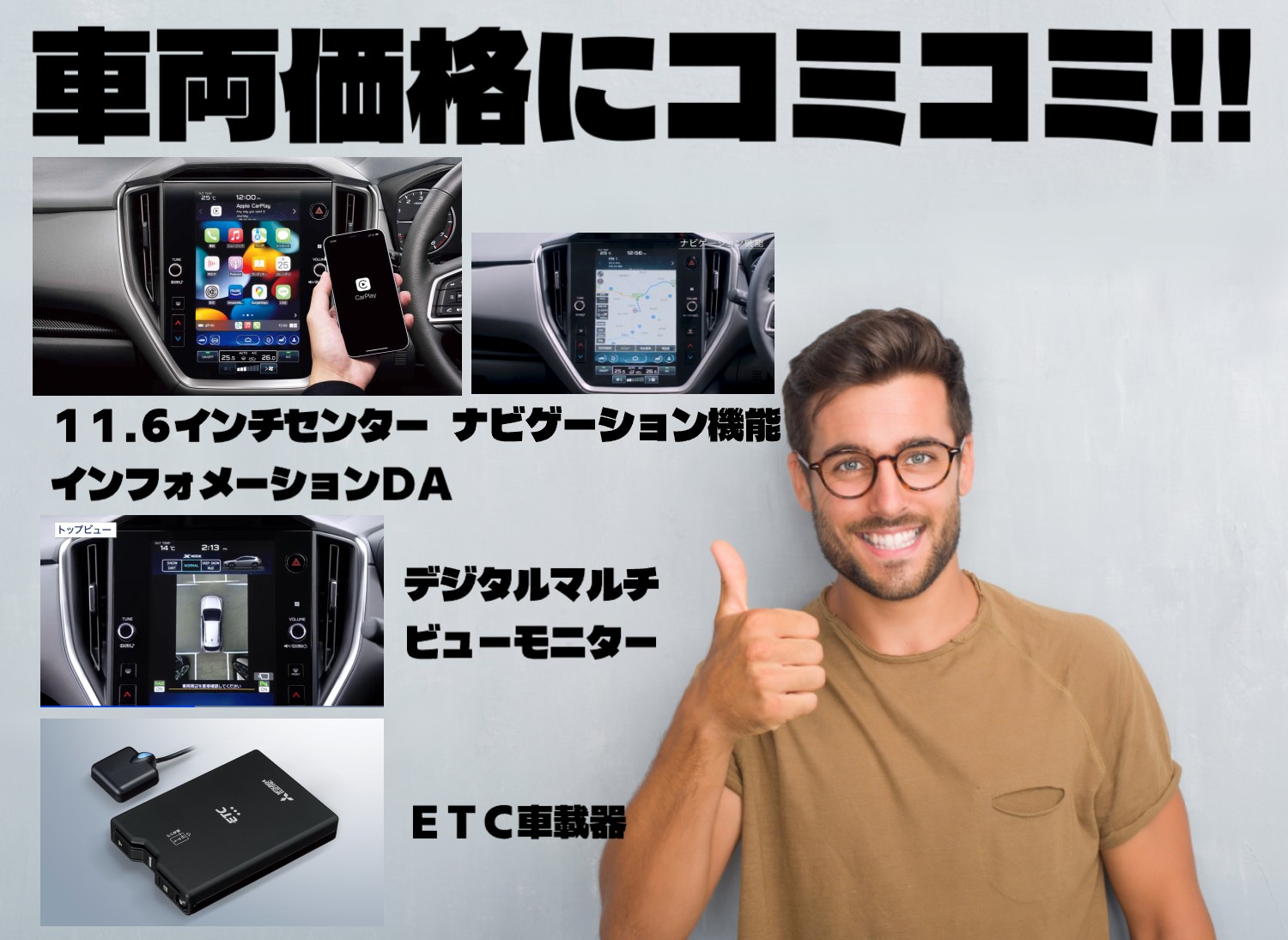 補足 | --- | 昨今、非常に需要が伸びてきましたドライブレコーダー。不意の事故もきちっと記録してくれます。GPS&Gセンサー搭載。クルマへの衝撃や振動で録画が始まります。駐車監視システム搭載。※価格は前後タイプの総額です。 | おクルマの「輝き」「傷からの保護」「撥水効果」を長期間、良好に保ちます。保守状況や駐車場の状況にもよりますが3年から5年の効果を持続させます。気持ちよくおクルマを維持したい方に大好評です。 |