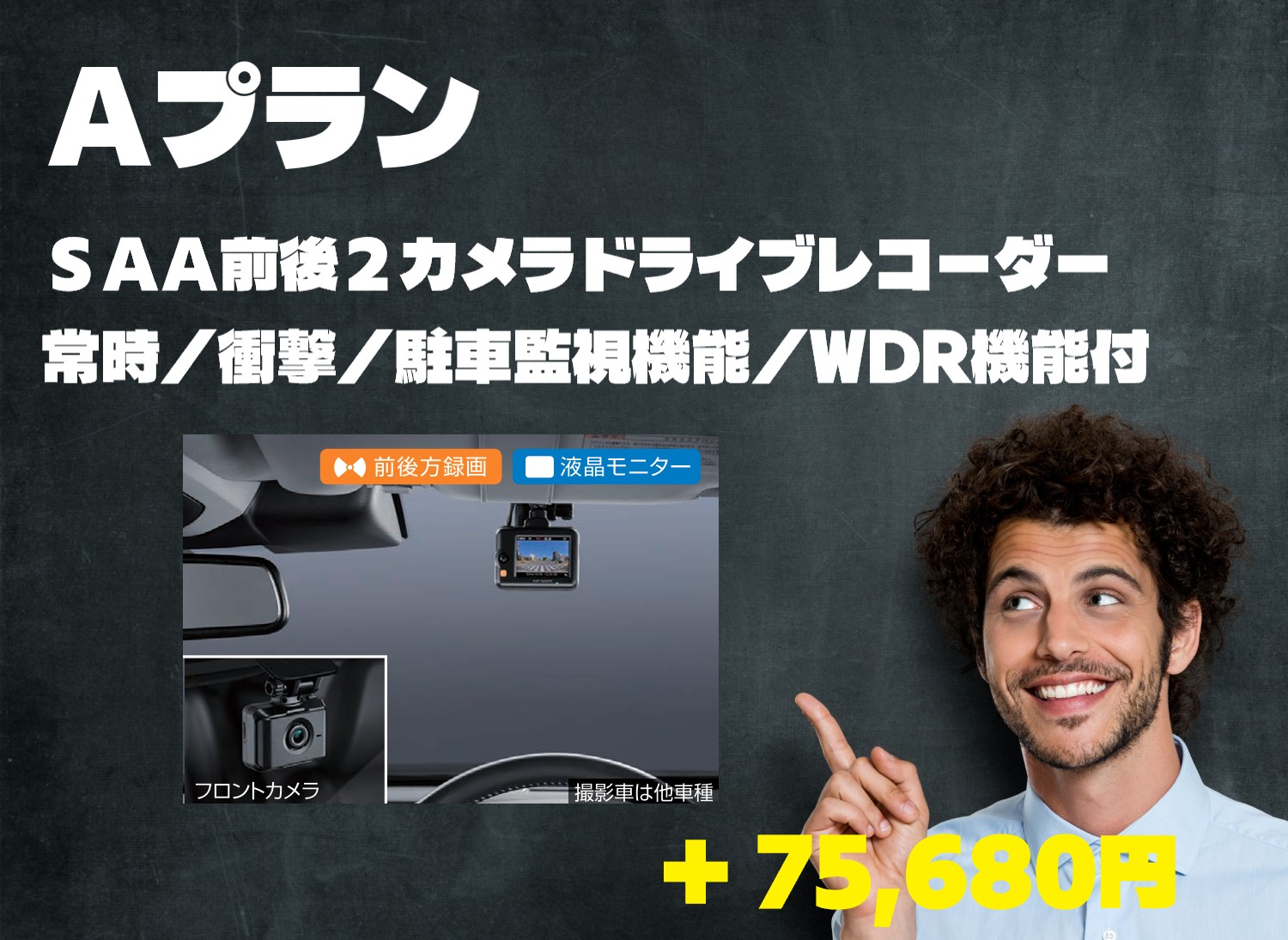 補足 | --- | 昨今、非常に需要が伸びてきましたドライブレコーダー。不意の事故もきちっと記録してくれます。GPS&Gセンサー搭載。クルマへの衝撃や振動で録画が始まります。駐車監視システム搭載。※価格は前後タイプの総額です。 | おクルマの「輝き」「傷からの保護」「撥水効果」を長期間、良好に保ちます。保守状況や駐車場の状況にもよりますが3年から5年の効果を持続させます。気持ちよくおクルマを維持したい方に大好評です。 |