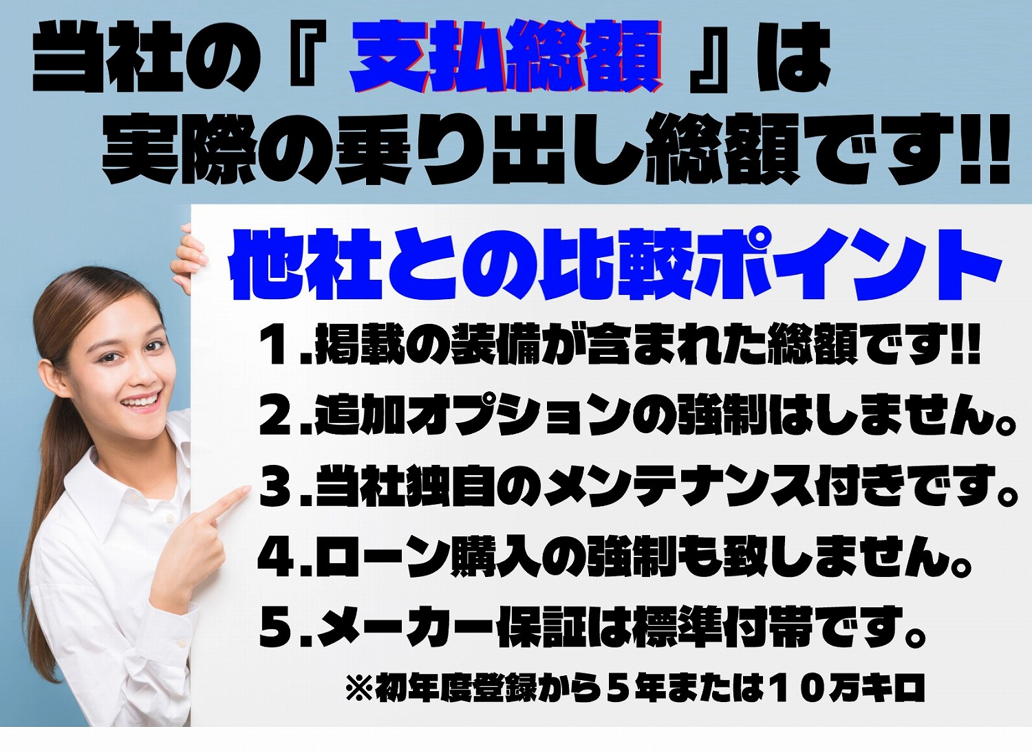 支払総額(税込) | 3,389,000 円 | 3,464,680 円 | 3,468,800 円 |